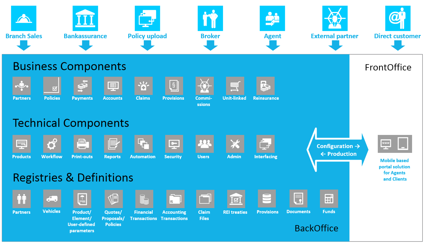 High level of parameterization enabling system flexibility: Online definition of insurance products via web UI; Clone and inheritance capabilities, reusability and user-defined calculation and validation formulas